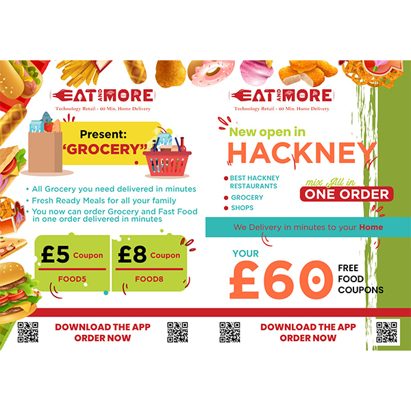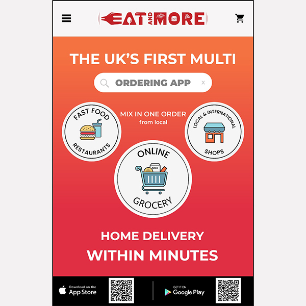 EatandMore is a first UK’s multi ordering mobile App. EatandMore is a revolutionary One Line Mobile Application allowed clients mix orders from different restaurants, grocery, shops all in one order with home delivery within minutes. EatandMore is a new technology retail starting in London – UK, operating from different micro HUB covering all the daily food clients need from Grocery, to Breakfast – Lunch – Ready Meal – Dinner and Essential consumer goods. All the food is daily fresh made for every need and delivered with or without grocery in minutes to the clients home. EatandMore cooperate with a best local restaurants / fast food and shops to offer our clients a top quality products and top quality services easy and fast delivered to clients home. EatandMore is open for a franchising cooperation opportunity in other UK large city and other country like USA / Cina / Europe / Middle East